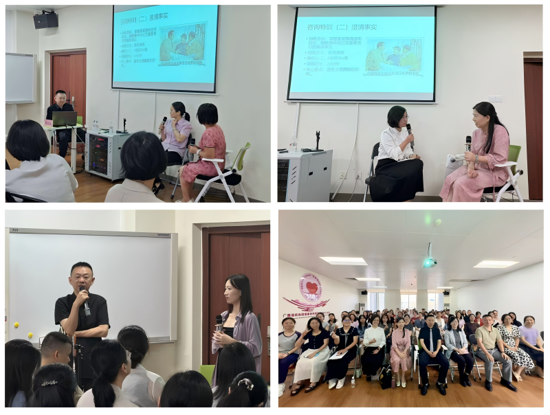 培训紧扣青少年拒学厌学议题,分“理论解析”、“沉浸实训”推进。徐福山教授结合自身临床心理工作经验,拆解拒学厌学行为内外影响因素,指出心理问题、亲子关系紧张与父母过高期望、社会竞争压力、信息过载等影响因素相互交织,共同诱发青少年学业困境,易导致青少年严重心身问题,亟需进行干预。随后,徐福山教授开展家庭干预场景实训,模拟亲子沟通冲突等情境,通过角色扮演、案例研讨、互动问答、分享经深圳“安心助学”项目实践验证的“家庭重构-个体激发-疗愈支持”三位一体干预技术等方式,深入浅出地解读了青少年厌学拒学停学的应对策略。